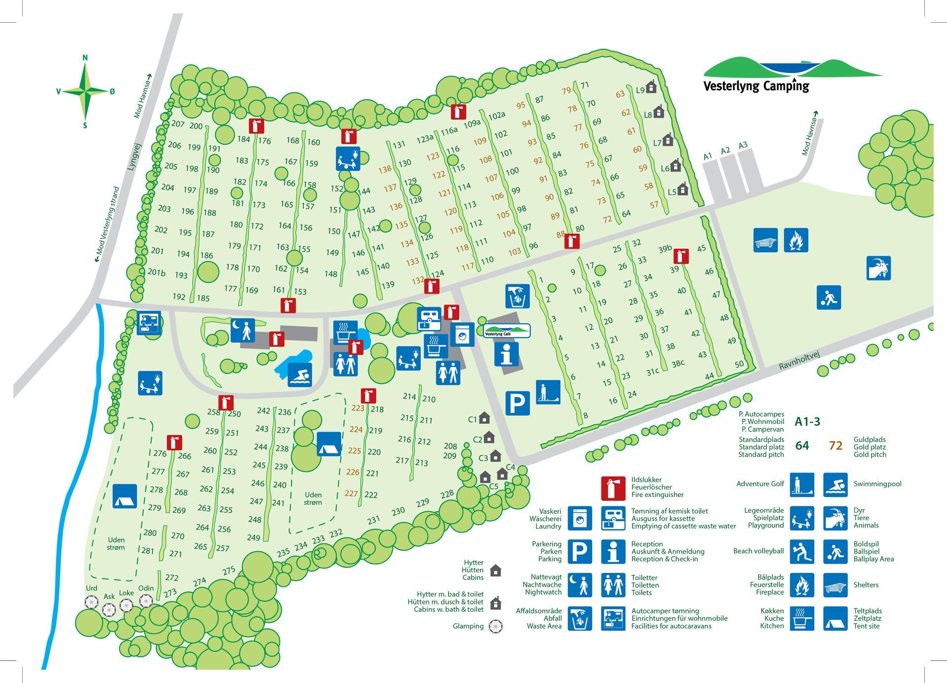 Vi byder naturligvis også velkommen til dig der enten kommer med campingvogn, autocamper, telt- eller teltvogn. Både campingvogne og hytterne er veludstyrede med alt, hvad du skal bruge til en god ferie, hverdagstur eller weekend.
