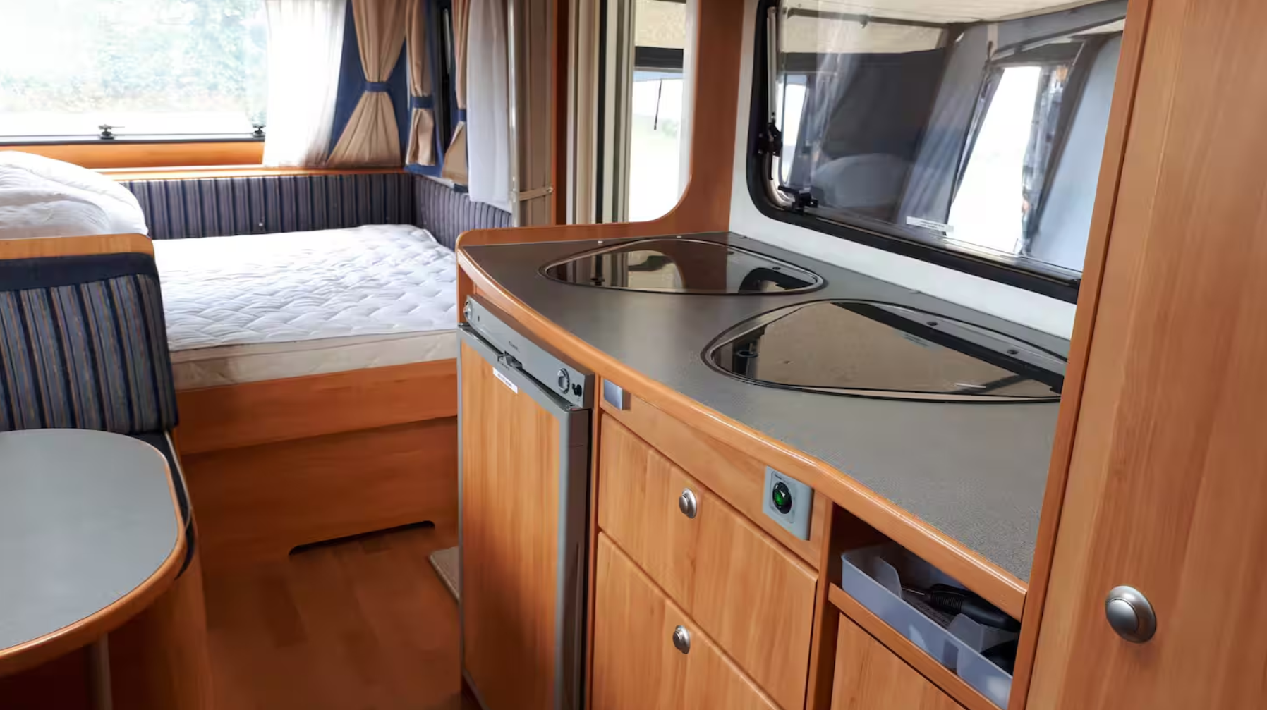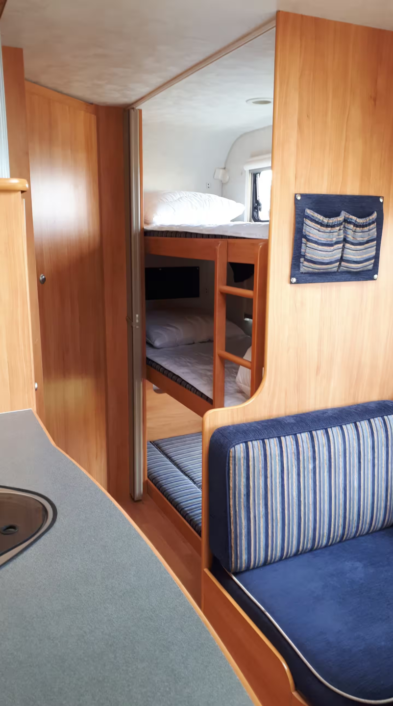 Vores luksusvogne er rummelige familievogne med plads til seks personer (fordelt med dobbeltseng og 2 køjesenge samt mulighed for opredning i siddegruppe).